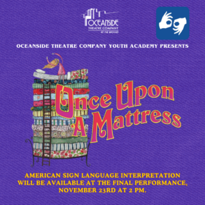 American Sign Language (ASL) interpretation will be available during the Sunday, November 23, 2 PM performance. Please email boxoffice@oceansidetheatre.org for special seating tickets.